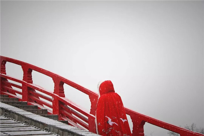 想有一個(gè)人,和TA,在虹橋上頭,舉目眺望,白色的雪和紅色的橋,相互問(wèn)候……
