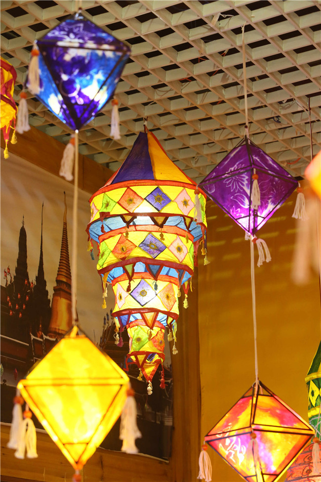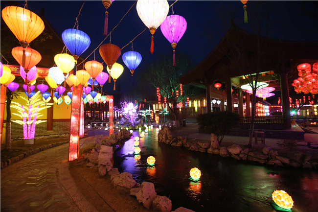 在古香古色的街道上,在道路兩旁的枝椏上,在屋檐下,在庭院里,在汴河水面等等,到處都是燈籠的身影。傍晚時(shí)分,亮晶晶燈籠為這個(gè)庭院、為園區(qū),添了一層異域風(fēng)情的風(fēng)采。