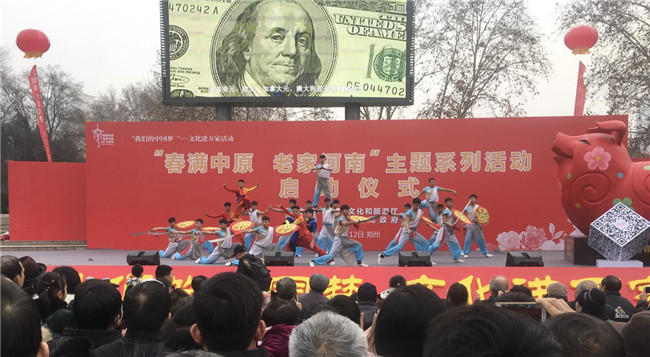 1月12日,鄭州市紫荊山公園廣場鑼鼓喧天、載歌載舞,處處洋溢著喜慶氣氛,濃濃的年味兒撲面而來。由河南省文化旅游廳和鄭州市政府共同主辦的“春滿中原 老家河南”主題系列活動正式啟動。嵩山少林景區(qū)為市民朋友們送上了精彩的少林功夫表演和禪武文化大餐。
