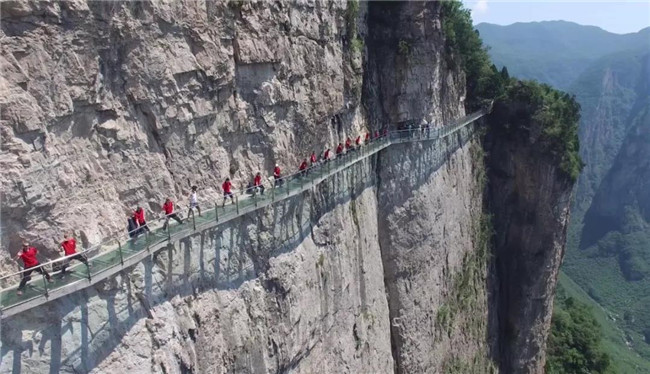 更有雙條玻璃棧道“恐怖”升級,全國首家景區(qū)建成的雙條玻璃棧道海拔1080米 全長400余米 隔空對望,新年第一“?!?!就在云臺山!