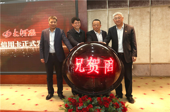 河南日報報業(yè)集團(tuán)黨委委員、大河網(wǎng)絡(luò)傳媒集團(tuán)董事長、大河報社社長王自合,大河報社副社長、大河傳媒有限公司副總經(jīng)理、大河生活卡執(zhí)行委員會主任金順利,鄭州銀行總行副行長、鄭州管理部總經(jīng)理孫海剛、鄭州銀行總行副行長張文建共同啟動鄭州銀行商鼎瑞卡發(fā)卡儀式。