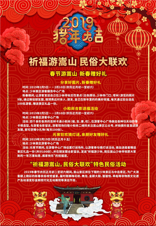 己亥年嵩山景區(qū)三大系列活動(dòng),助力豬年新春: