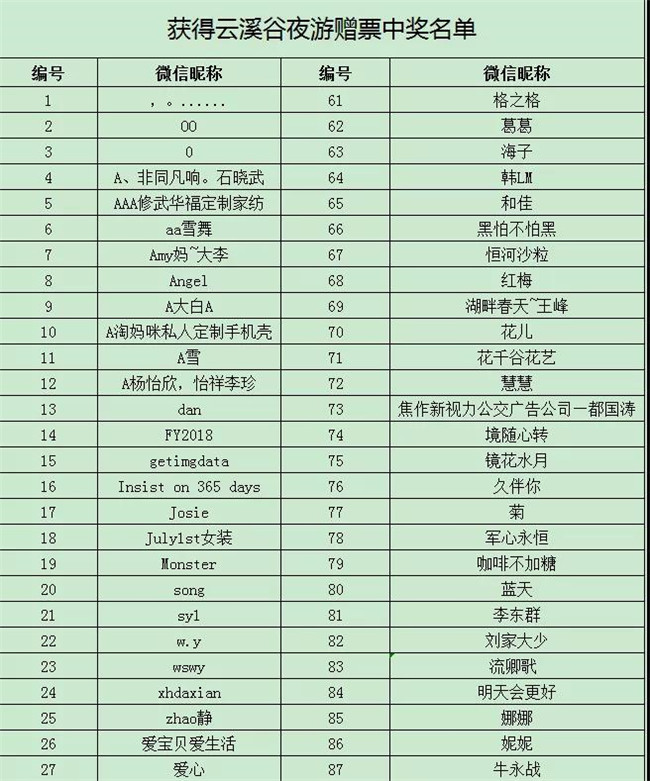 4、每位中獎者獲贈2張云溪谷夜游門票。