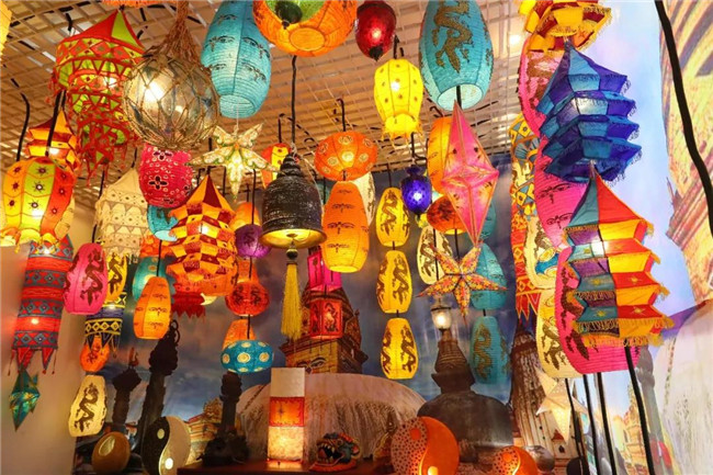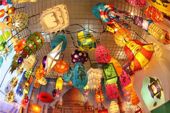 南亞館以尼泊爾印度燈為主,設(shè)有尼泊爾毛線燈、亮片燈、布藝、手工紙繪燈、傘燈、塔燈、印度巖石燈籠、印度撐收式魚嘴傘燈籠、巴連佛邑?zé)?、南瓜燈等,五十多個(gè)品種的燈籠,整個(gè)館內(nèi)印巴尼文化為主體,給人以恬靜和諧的感覺。非洲館