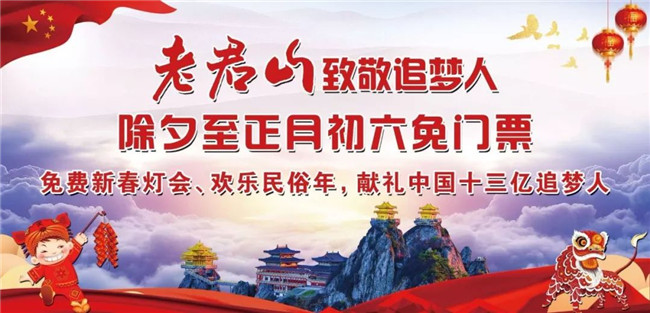 歡樂過大年,致敬追夢人!2019年2月4日至2月10日(大年三十至大年初六),老君山景區(qū)對全國人民免門票(老君山門票門市價100元/人)