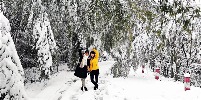 看林間霧凇,竹海雪原、望山峰白雪,宛如置身童話中的冰雪世界。
