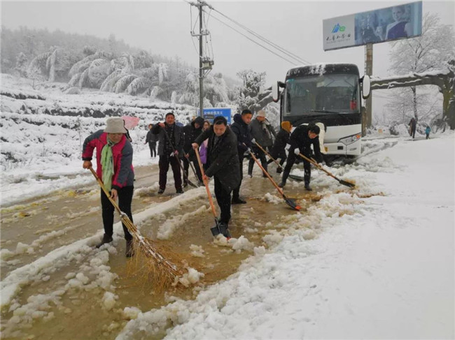 為了保證游客的出行安全,西九華山景區(qū)積極組織工作人員及時清理道路積雪,處理歪倒樹木、樹木斷枝。經(jīng)過數(shù)小時的緊張清掃,積雪一掃而凈,確保了游客正常游覽。