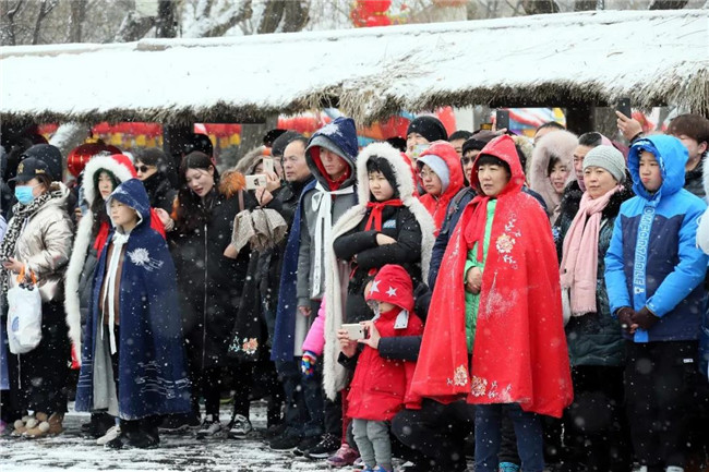 大年初六,清明上河園飄起了雪花,但是卻沒有影響游客的游園熱情、臉上的歡樂、看演出時的認真!