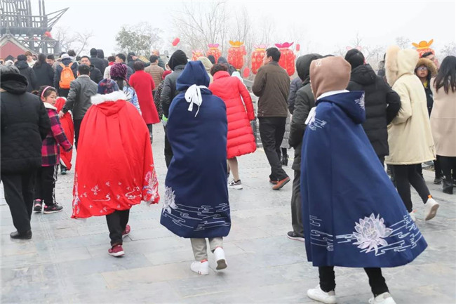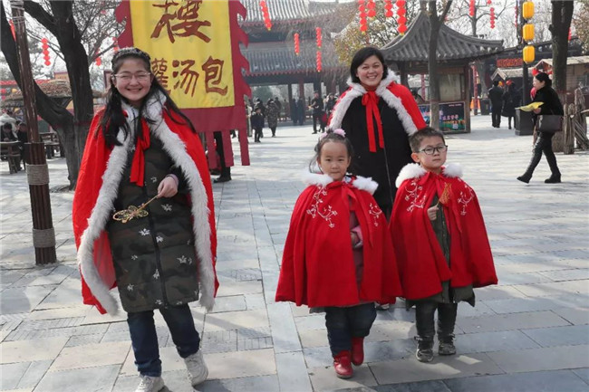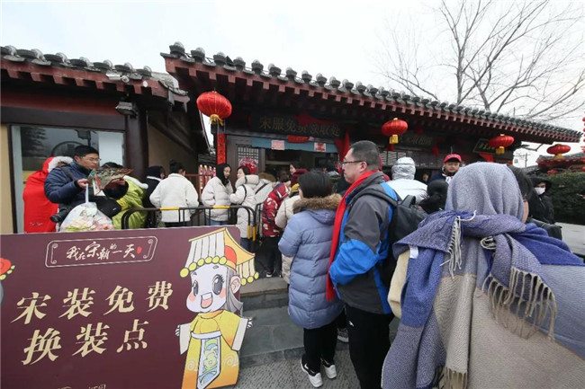 景區(qū)特推出春節(jié)版“我在宋朝的一天”免費穿宋裝活動深受廣大游客喜愛,游客可免費在景區(qū)領(lǐng)取精心設(shè)計的“披風”,換裝后的游客儼然成為一個個“俠客”,游走在園區(qū)中成為一道道靚麗的風景線,“一朝步入畫卷、一日夢回千年”的穿越感油然而生。