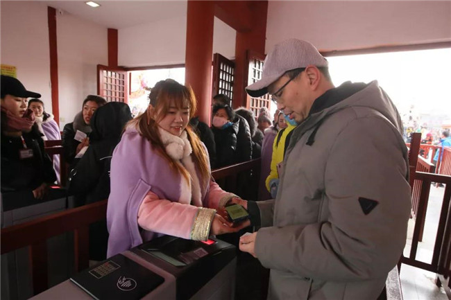 春節(jié)期間,清明上河園共開放迎賓門、端門、金水門、通津門四個大門,增設(shè)售票口、檢票口近30個,同時利用“掃碼購票快捷入園”、多種支付手段、小程序停車等,最大程度提高游客的購票速度和入園速度。