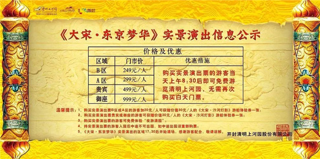 這是一場(chǎng)700多名演員參與的震撼巨作,這是一次聲光電融合的視覺(jué)盛宴,更是一個(gè)能夠穿越時(shí)空之旅的時(shí)光隧道。2019賀歲版《大宋·東京夢(mèng)華》于大年初一正式亮相,購(gòu)《大宋·東京夢(mèng)華》票,早上8:30即可入園,無(wú)需再次購(gòu)買(mǎi)白天門(mén)票。