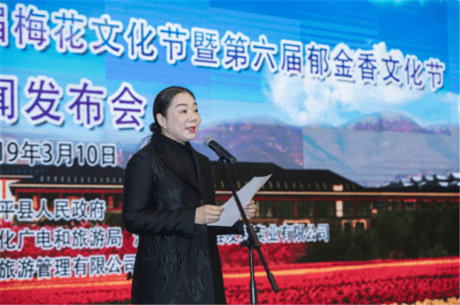 河南省旅游協(xié)會秘書長滑蕾在新聞發(fā)布會上致辭