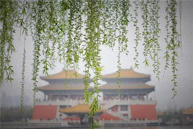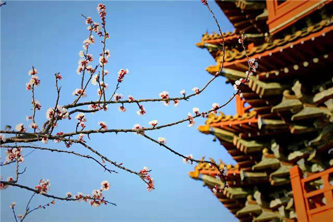 陽春三月,春風(fēng)悠悠,河堤旁的垂柳吐出了新芽;一沐春風(fēng),萬物新生,春天的氣息就豐富了起來。迎春花開,花開迎春,一抹抹嬌黃早已佇立枝頭;纖柔枝條,嫩黃花朵,春天的色彩就斑斕了起來。春光明媚,白墻瓦黛,安靜的映在瑰瑋的建筑上;春風(fēng)得意,花開燦爛,春天的詩意就隨之即來。