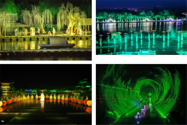 如果說白天的清園,讓人感到愜意美好,夜晚的清園,讓人感到迷人浪漫,那么《大宋·東京夢華》則讓人感到震撼?!洞笏巍|京夢華》的斑斕在于燈光的璀璨,煙花的燦爛;《大宋·東京夢華》的斑斕在于舞臺的大氣,音樂的經(jīng)典;《大宋·東京夢華》的斑斕在于建筑的瑰瑋,演員的表演。
