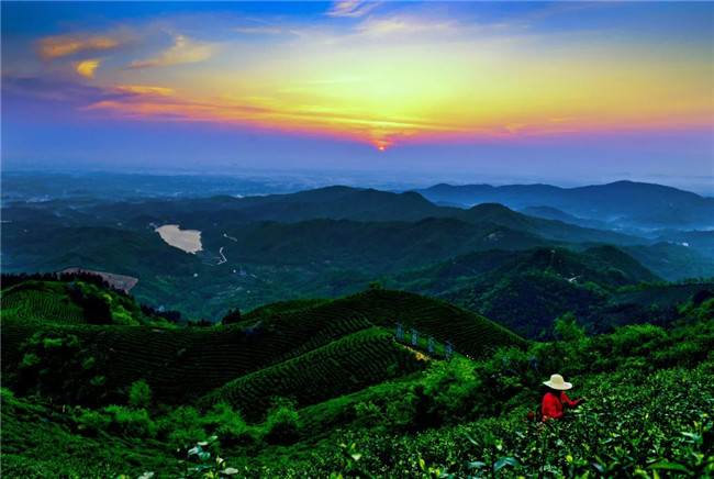 遙望茶山云霧繞,茶香醉心人神往,若隱若現(xiàn)采茶者,茶山如歌入夢(mèng)來(lái)。