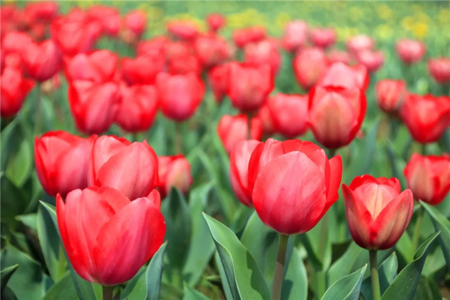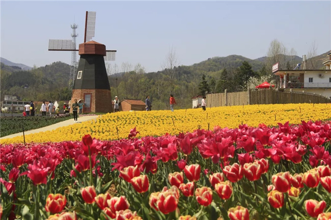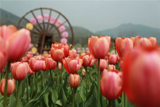 滿園的郁金香爭(zhēng)相盛開,如同一束束小小的火苗,仿佛一片多彩的朝霧在飄蕩。