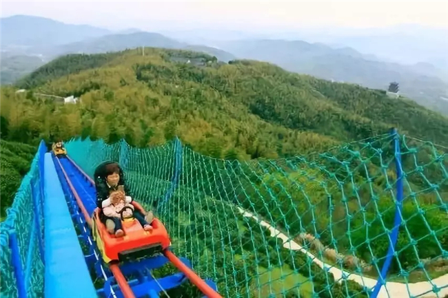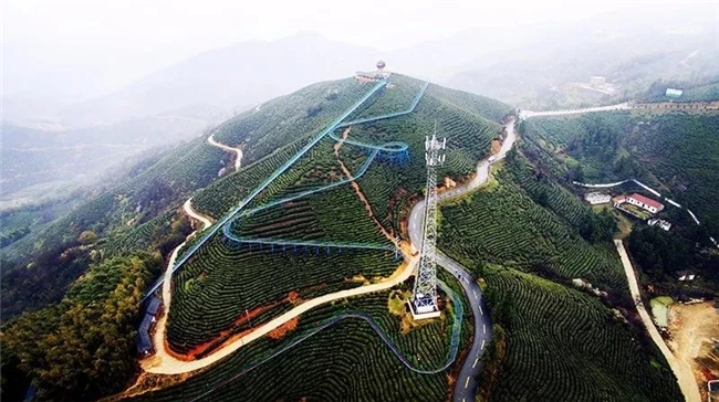 茶山滑道,全長1200多米,整體落差達158米,勢如盤龍、依山就勢、甚為壯觀。乘坐觀光滑道直達茶山之頂,舉目四望,山前梯田如鏡,村舍如在畫中,四周峰海山濤、云水煙雨的山水美景如同一幅幅水墨畫展現(xiàn)在眼前。