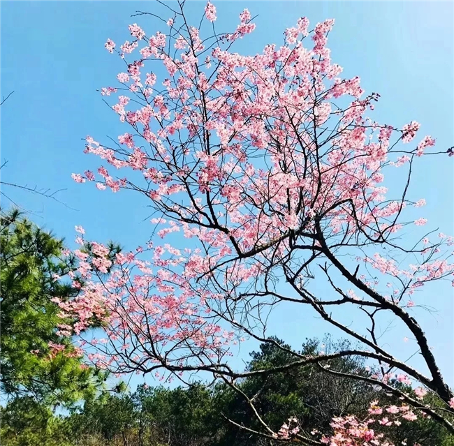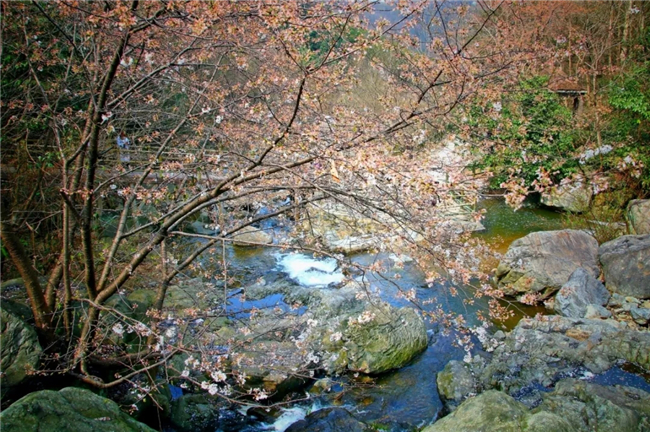 在游覽山水的同時,漫山遍野的野櫻花比起春色來也是不逞多讓,魯迅先生曾贊美櫻花像“緋紅的輕云”,滿樹燦爛芬芳的雪白粉紅,漫天紛飛瀟灑飄逸的櫻花雨,心不由得空靈了起來。