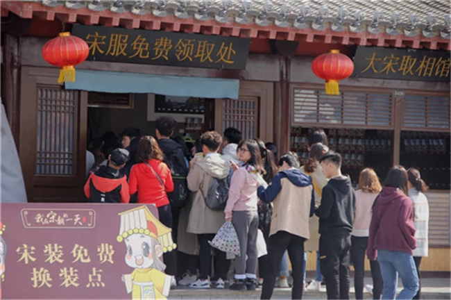 一朝步入畫卷,一日夢回千年。在這春暖花開處處是景的季節(jié),體驗(yàn)“免費(fèi)穿宋裝”的游客隨處可見。