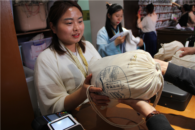 換上宋裝的游客在園區(qū)內(nèi)游玩,好像真的穿越到了宋朝一樣,體驗(yàn)這盛世繁華!沒(méi)錯(cuò),她們就是穿越俠!