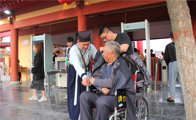 來(lái)到清園,你就會(huì)發(fā)現(xiàn)從入園到游園,都能看到一批又一批的“神秘人”,他們穿梭于清園的各個(gè)角落,他們來(lái)無(wú)影,去無(wú)蹤。但卻都能在你最需要幫助的時(shí)候及時(shí)出現(xiàn)。在每場(chǎng)演出時(shí)、在需要幫助時(shí)、在充滿疑惑時(shí)、在遇到問(wèn)題時(shí)……他們?nèi)ψ龊米约旱谋韭毠ぷ鳎褪沁@樣一批人,我們稱(chēng)他們?yōu)榍鍒@“俠客”。