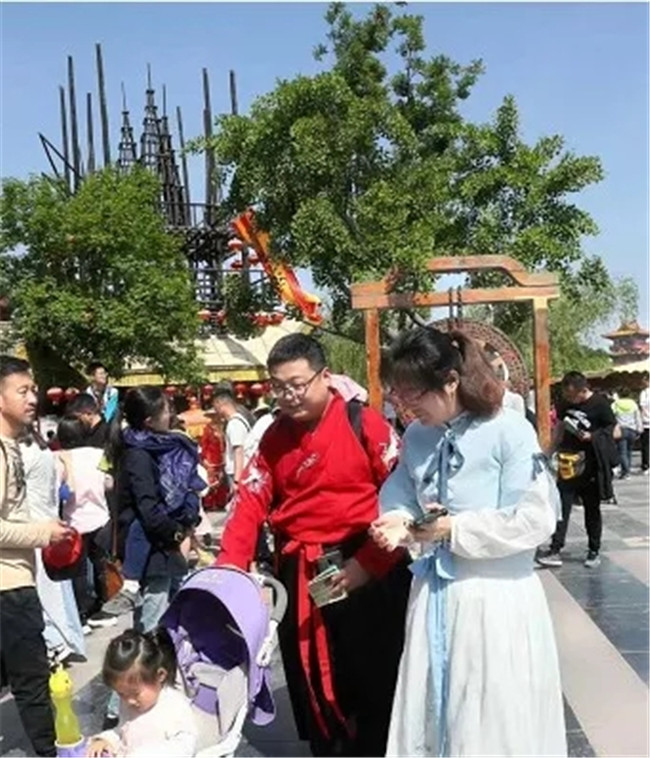 園的第一件事當(dāng)然就是去換上免費(fèi)的宋裝!游客們紛紛換上宋裝,開啟“我在宋朝的一天”,放浪不羈的俠客,美麗可愛的小仙女,德才兼?zhèn)涞臅膫€(gè)才是真的你呀?