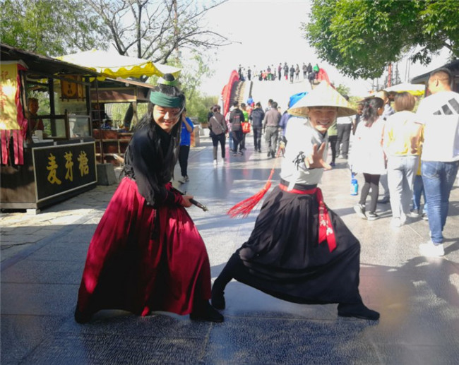 “五一”小長(zhǎng)假期間,演員們紛紛走上街頭,與游客互動(dòng),沒準(zhǔn)下一個(gè)驚喜就降落在你這里噢!