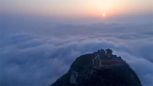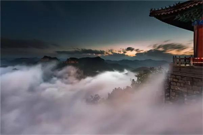 最難得的可能就是登上云臺山的主峰茱萸峰,走過1600多個臺階的天梯到達山頂,紅墻綠瓦的宮殿,波瀾壯闊的云?!械捏@喜盡收眼底。