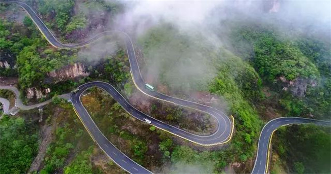 讓人記憶尤其深刻的就是懸崖間的公路隧洞疊彩洞,大巴車帶游客穿越五連發(fā)卡彎,感受《頭文字D》中的刺激和推背感。