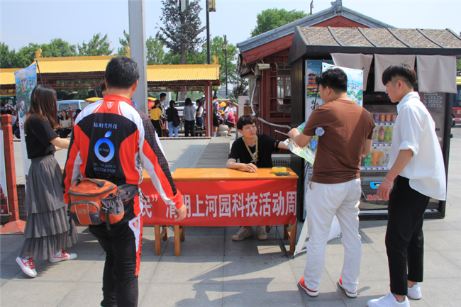清明上河園積極參與”2019年全省科技活動(dòng)周”(5月19日—26日),專門設(shè)立活動(dòng)點(diǎn),為游客講解。