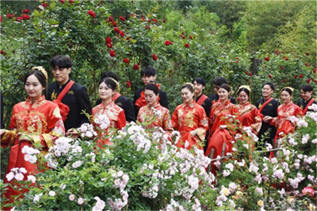 伴隨著優(yōu)美的音樂(lè),新人們漫步月季花叢,任月季花絢麗斑斕,任月季花香彌漫,四目相對(duì),十指相扣,留下相偎相依的真愛(ài)瞬間……