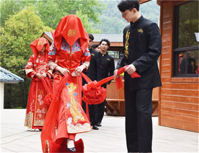 在雞冠洞溶洞進(jìn)口拜天地、踏火盆,掀開(kāi)紅蓋頭,永遠(yuǎn)在一起!