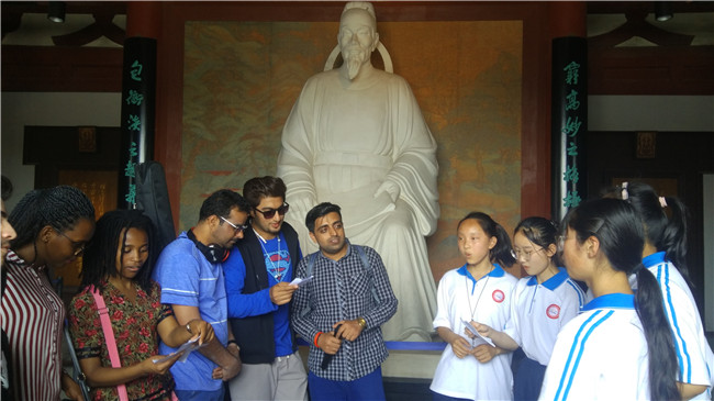 杜甫故里國際范,首創(chuàng)留學(xué)生研學(xué):106名留學(xué)生,分別來自巴基斯坦、坦桑尼亞、吉爾吉斯坦、南非、剛果、埃賽俄比亞、津巴布韋、烏干達(dá)、老撾、泰國、馬來西亞、越南、俄羅斯、阿塞拜疆、亞美尼亞、格魯吉亞、烏茲別克斯坦、烏拉圭等20多個一帶一路國家,身著各國民族服裝,從世界各地匯聚杜甫故里,在這里邊學(xué)邊唱邊跳,讓古色書香的杜甫故里也立時充滿了國際化、現(xiàn)代化的動感氛圍。