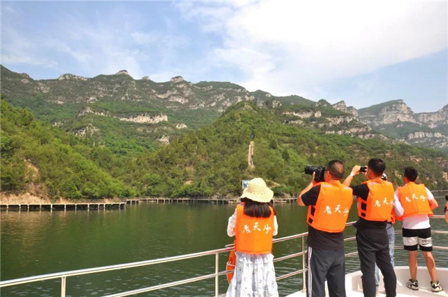 山得水而靈,青天河大泉湖全長(zhǎng)7.5公里,寬近100米,水深60余米, 峽谷一線青天,煙波浩淼,巍巍壯觀。湖水主要來源于雄冠“華夏第一泉”的三姑泉,自然,達(dá)人們對(duì)它寵愛有加!
