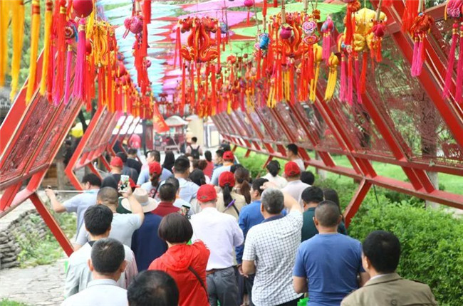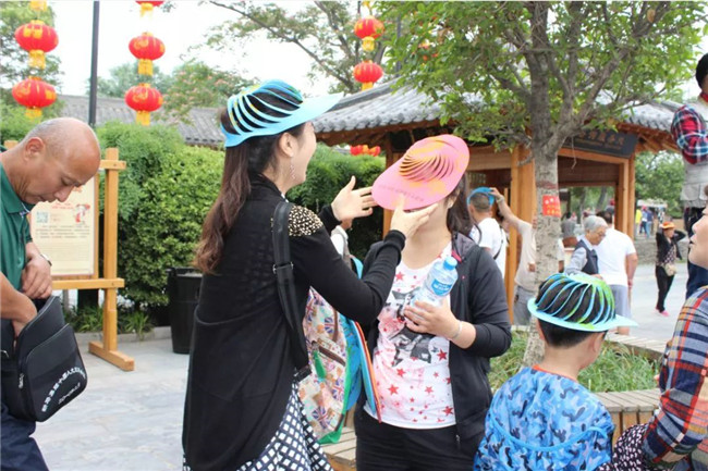 古時端午有避五毒的習(xí)俗,端午文化節(jié)期間,迎賓門入園的游客可以領(lǐng)取五毒帽一頂。