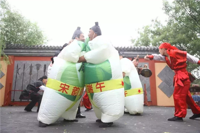 為了讓游客度過一個傳統(tǒng)、安詳?shù)亩宋缂压?jié),端午文化節(jié)期間,清明上河園在每天上百場常規(guī)演出的基礎(chǔ)上另外增加了多場與端午習(xí)俗有關(guān)的節(jié)目。
