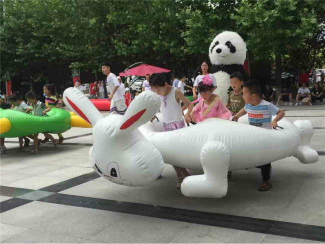 6月8日的親子嘉年華活動(dòng)中,雙胞胎們帶著游客和小朋友,一起在廣場(chǎng)上玩“龜兔賽跑”、“毛毛蟲小火車”、“香蕉滾筒”、“歡樂釣魚”等互動(dòng)游戲。游客與雙胞胎零距離互動(dòng),感受雙胞胎的活力與熱情。