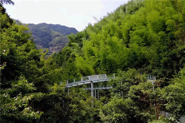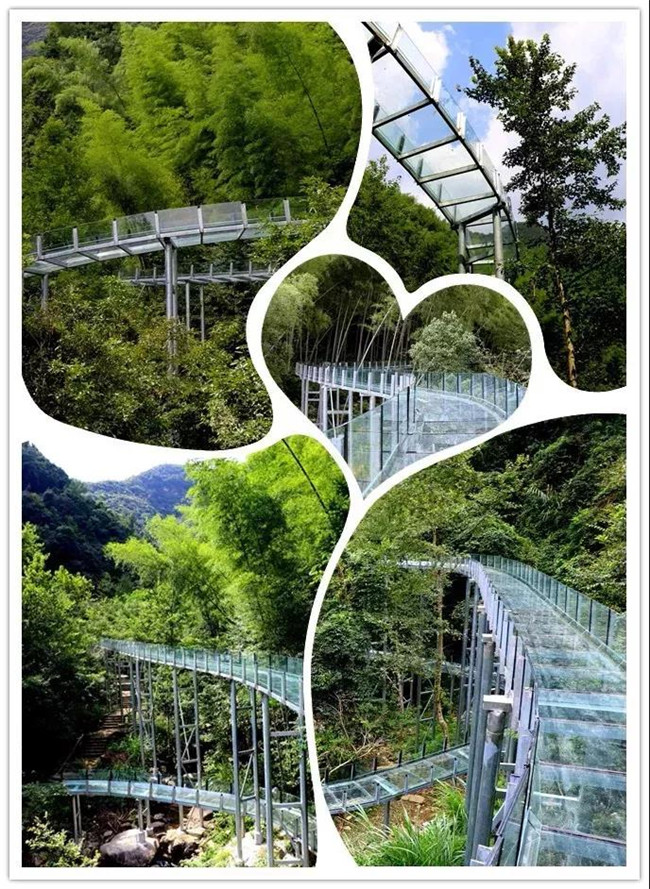 青山綠水、玻璃棧道、水車翠竹,這三者碰撞在一起,鐺鐺鐺!我們龍津溪地的空中玻璃滑道漂流應運而生。
