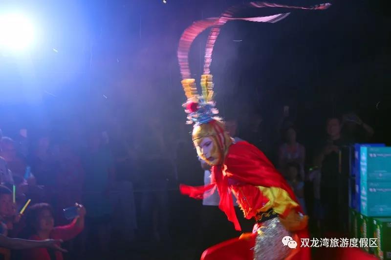 傍晚來臨,篝火晚會終于隆重登場,幽默搞笑的主持人、變幻莫測的魔術(shù)表演、活靈活現(xiàn)的孫悟空、性感的鋼管舞,一幕幕精彩的視覺盛宴。
