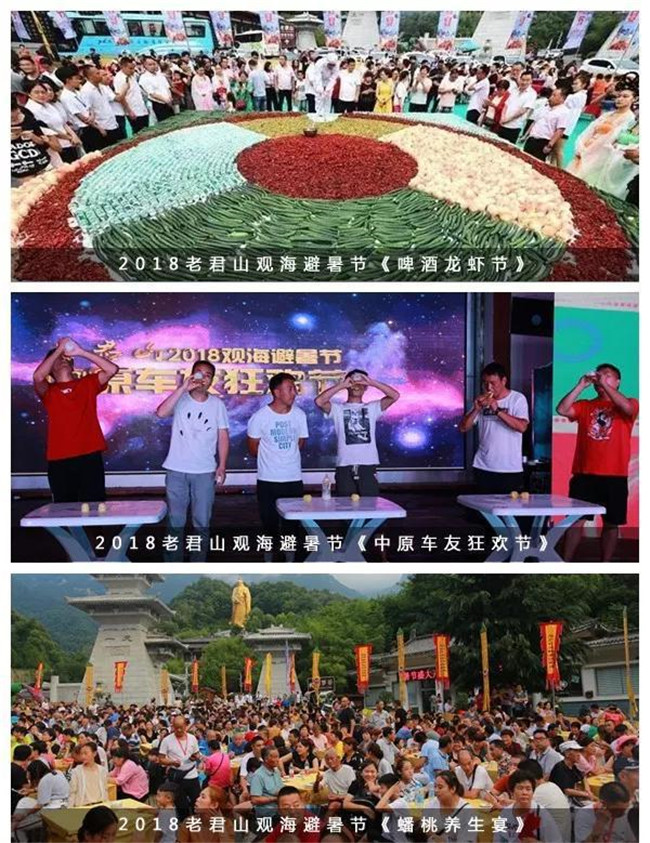 今年夏天,精彩繼續(xù)!2019老君山觀海避暑節(jié),啤酒龍蝦狂歡節(jié)美味繼續(xù),車友狂歡節(jié),云海露營節(jié),金婚慶典等王牌活動精彩繼續(xù)!更有新增漢服嘉年華,萬人貼秋膘等各種活動,等你來約!
