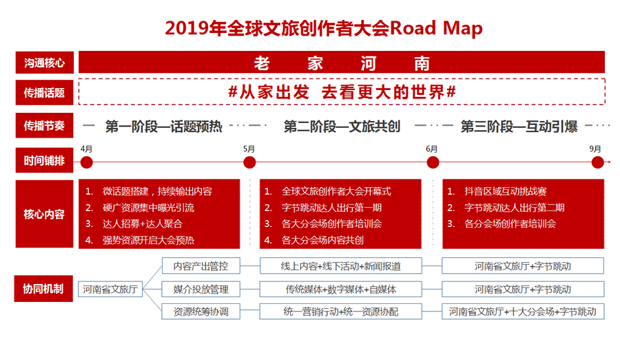 會(huì)議表示,隨著共創(chuàng)計(jì)劃的深入開展,一是線上“老家河南”專題持續(xù)發(fā)酵,精品內(nèi)容不斷上架。省內(nèi)的各主流媒體均有專人持續(xù)跟蹤、深入報(bào)道文旅共創(chuàng)的情況及相關(guān)措施。越來越多的作品被整理、收集、上架到“老家河南”專題;二是抖音區(qū)域挑戰(zhàn)賽推陳出新。為發(fā)現(xiàn)和推介“老家河南”文旅資源,省廳聯(lián)合抖音平臺(tái)開設(shè)區(qū)域挑戰(zhàn)賽,搭建不同話題,從河南美食哪家強(qiáng)、精彩河南舞起來、搞笑都帶河南范、秀出中原古韻風(fēng)等話題開設(shè)入口,引導(dǎo)廣大網(wǎng)民和創(chuàng)作者炫出河南精彩。截至目前,挑戰(zhàn)賽相關(guān)話題瀏覽量已達(dá)1.69億人次;三是主、分會(huì)場(chǎng)本土創(chuàng)作熱情高漲。隨著傳播量級(jí)的增長(zhǎng),各分會(huì)場(chǎng)的景區(qū)也感受到了共創(chuàng)帶來的變化,比如寶泉度假區(qū)反饋隨著共創(chuàng)工作的不斷推進(jìn),到達(dá)景區(qū)的游客趨向年輕化,新的宣傳手段吸引了更多的年輕消費(fèi)群體;濟(jì)源市旅游委充分發(fā)揮當(dāng)?shù)貎?yōu)秀創(chuàng)作者帶動(dòng)作用,積極主動(dòng)策劃活動(dòng),并和當(dāng)?shù)鼐皡^(qū)負(fù)責(zé)人(李慶軍擁有抖音粉絲14.2萬)每周組織員工進(jìn)行創(chuàng)作交流,僅一周時(shí)間濟(jì)源市在抖音上的傳播話題#在抖音遇見濟(jì)源,視頻播放量就突破了650萬。