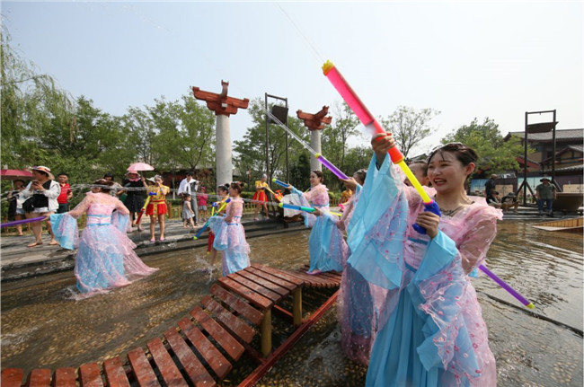 當(dāng)刺激歡鬧的水槍大戰(zhàn)遇見柔中帶剛的鼓上舞,這個夏天,在清明上河園,注定歡樂~