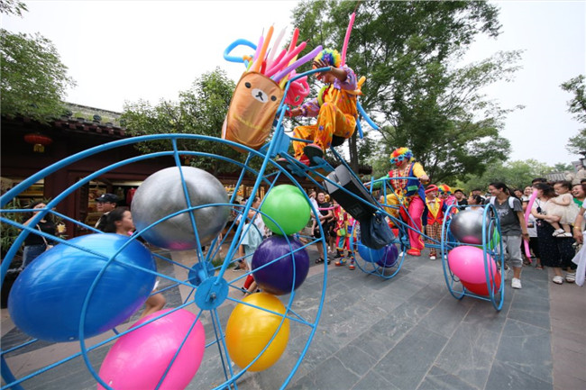 西域小丑不遠(yuǎn)萬里穿越到大宋,滑稽的服飾、神奇的魔術(shù)、精彩的表演……讓置身于清園的游客享受著無處不在的歡樂。