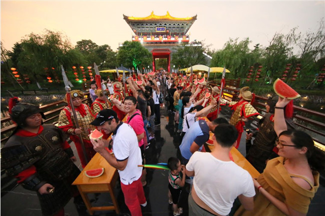 與夏天最配的事——吃瓜!每個周六,清明上河園將上演聲勢浩大的御林軍大戰(zhàn)吃瓜群眾,皇家御林軍嚴(yán)陣以待,吃瓜群眾毫無懼色,期待你的參與。