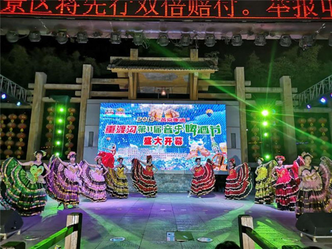 激烈的啤酒之王爭霸賽之后,重渡溝的主題狂歡晚會也如約而至。在璀璨絢爛的煙花表演中萬名游客齊聚演藝廣場,共賞狂歡盛會。趣味互動、醇香美酒、動感勁爆的音樂和活力四射的演出,重渡溝的清涼夏夜讓現(xiàn)場游客如癡如醉,盡情釋放。