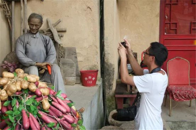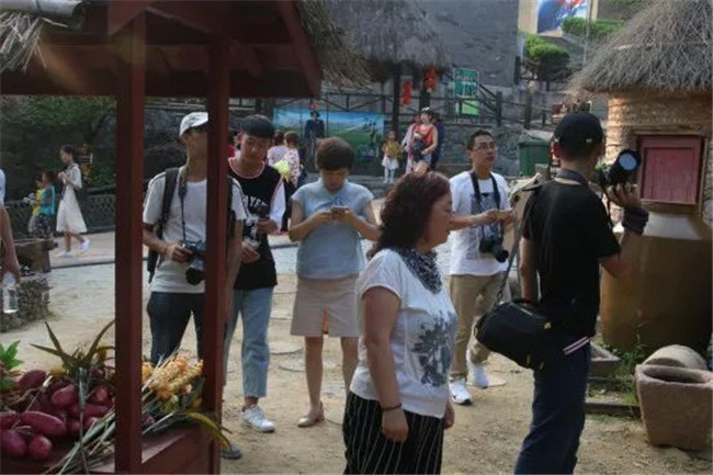 在緊接著的民俗文化體驗(yàn)中,民俗文化村內(nèi)隨處可見的農(nóng)耕時(shí)代先人們生活場(chǎng)景讓創(chuàng)作者們很有感觸。手工作坊、古法釀酒、糧油加工、紡織、編織、打鐵、豆腐加工等歷歷在目。達(dá)人們實(shí)地體驗(yàn)農(nóng)耕用具的用法,手工技藝的制作方法,他們用相機(jī)或手機(jī)或拍或錄,記下一個(gè)個(gè)有趣的場(chǎng)景。