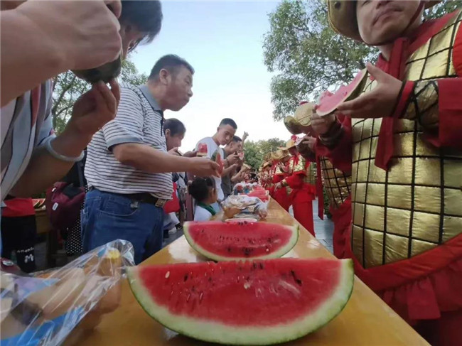 無西瓜,不夏天?;噬舷轮迹笏喂俦c民同樂,命百名御林軍在上善門前擺開陣勢,接受吃瓜群眾的挑戰(zhàn)。