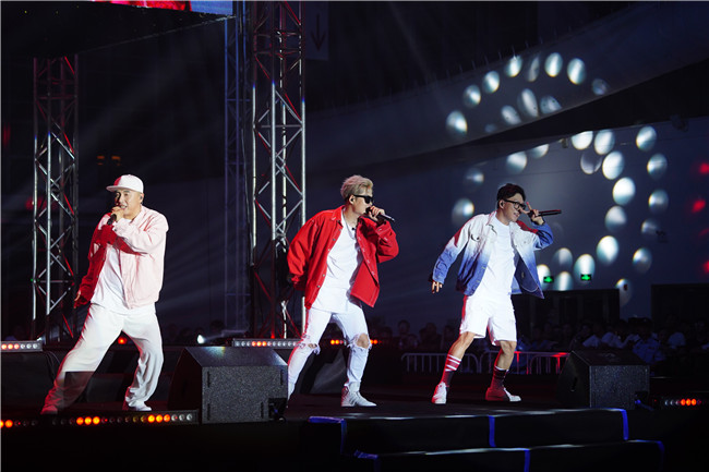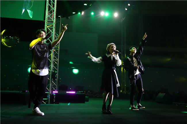 阿里郎為大家?guī)Я俗约喝伦髌贰恫屎缥鞣罚@次演唱也是他們首次登臺(tái)演唱。歡快的節(jié)奏,搖滾和布魯斯的結(jié)合,立馬讓現(xiàn)場(chǎng)的氣氛活躍了起來(lái)。“我是隔壁的泰山,抓住愛(ài)情的藤蔓”《隔壁泰山》一出,更是引發(fā)全場(chǎng)觀眾的互動(dòng),為今晚的嗨抖夜帶來(lái)一波小高潮。