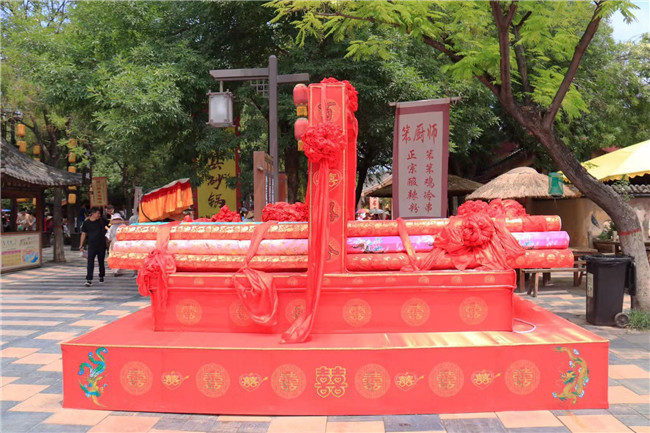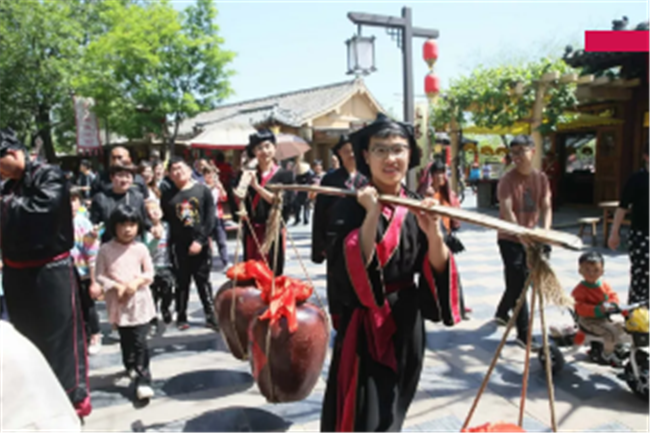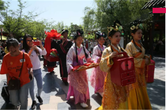嚯~七夕文化節(jié)期間的上善門真是氣派!家家戶戶門前都貼上了“囍”字。三書六禮游戲,體驗(yàn)古人的結(jié)婚流程~結(jié)婚這件事,怎么能少了紅人“王小姐”,王員外在七夕當(dāng)天,給大伙兒發(fā)喜糖~有錢 任性!