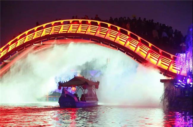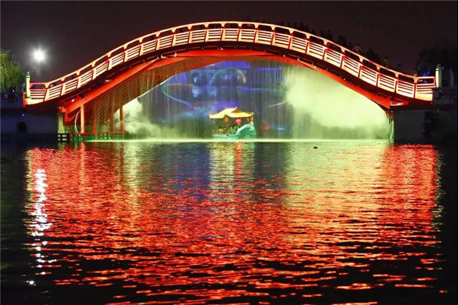 乘坐游船從多彩的虹橋下劃過,聽著水滴落在船的甲板上一賞汴河四季。